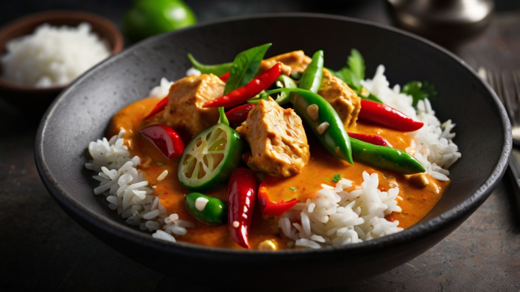 Dieses originalgetreue Rote Thai-Curry mit Hähnchen, Kokosmilch und frischen Gewürzen bringt den Geschmack Thailands direkt auf deinen Teller!