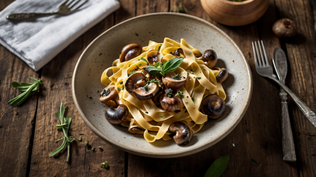 Steinpilze sind nicht nur geschmacksintensiv, sondern auch eine hervorragende Eiweißquelle. Kombiniert mit Bandnudeln und einer cremigen Soße entsteht eine perfekte Wohlfühlmahlzeit.