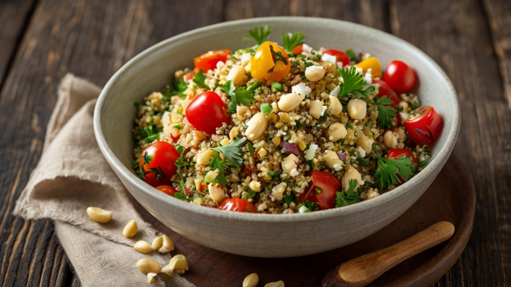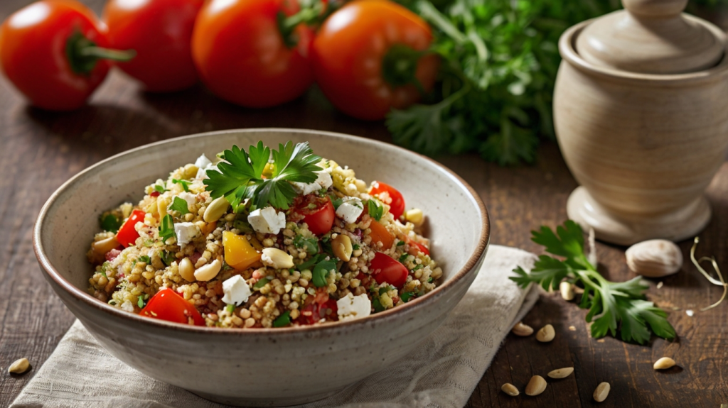 Dieser erfrischende Quinoa-Salat kombiniert nussiges Quinoa mit knackigem Gemüse, cremigem Feta und gerösteten Pinienkernen. Perfekt als leichtes Mittagessen oder als Beilage zum Grillen!