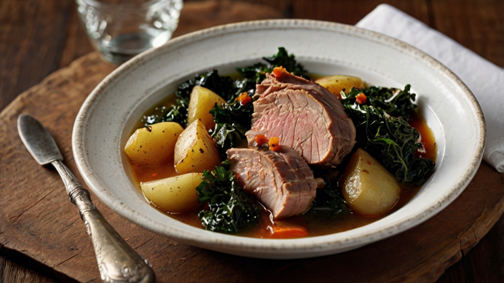Dieser deftige Grünkohleintopf ist ein echter Winterklassiker! Würziges Kassler, zarte Kartoffeln und frischer Grünkohl machen ihn zu einem perfekten Wohlfühlgericht.