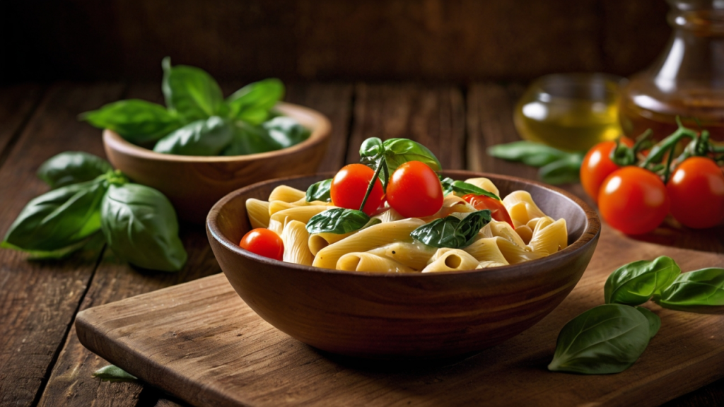 Für extra Protein kannst du gekochte Hähnchenbrust oder gebratene Garnelen hinzufügen. Serviere das Gericht mit frischem Basilikum oder geriebenem Parmesan für ein besonderes Aroma.