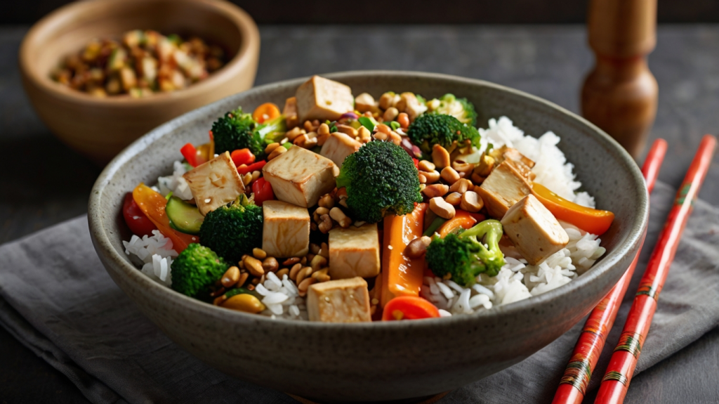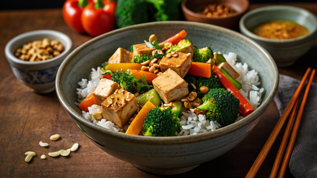 Tofu liefert hochwertiges pflanzliches Eiweiß, während Gemüse für viele Vitamine sorgt. Die Kombination aus Erdnüssen, Kokosmilch und Curry gibt diesem Gericht einen authentischen, asiatischen Geschmack.