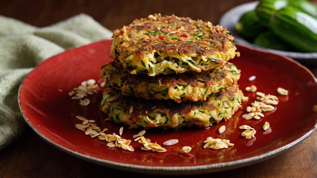 Diese Puffer liefern wertvolle Ballaststoffe und pflanzliches Eiweiß aus Haferflocken und Käse. Durch die Zucchini werden sie besonders saftig, während Haferflocken für eine knusprige Konsistenz sorgen.