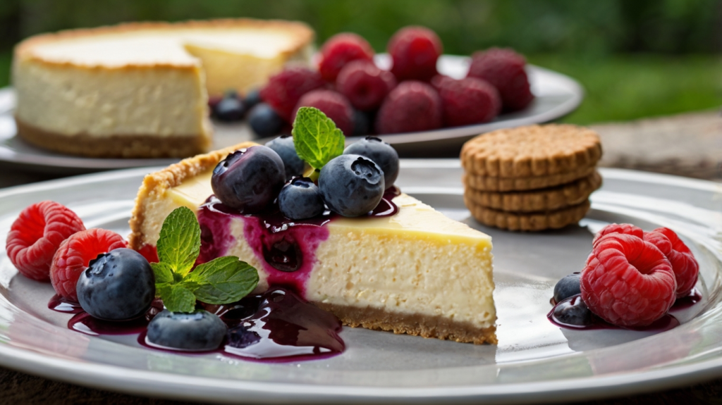 Ein leichter und saftiger Cheesecake mit knackigem Boden, cremiger Füllung und frischen Blaubeeren – reich an Protein und perfekt für gesundheitsbewusste Genießer!