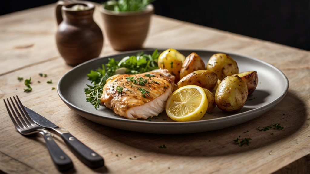 Diese saftige Zitronen-Hähnchenbrust wird im Ofen mit würzigen Kartoffeln und Knoblauch geröstet. Dazu gibt’s einen cremigen Basilikum-Dip und frischen Salat – ein perfektes Familienessen!