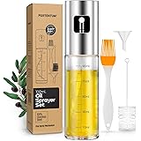 PORTENTUM Ölsprüher 100 ml aus Edelstahl, Ölspender Glasflasche mit Zubehör, Auslaufsicherer Ölspray für Kochen, Grillen, Salat und Heißluftfritteuse