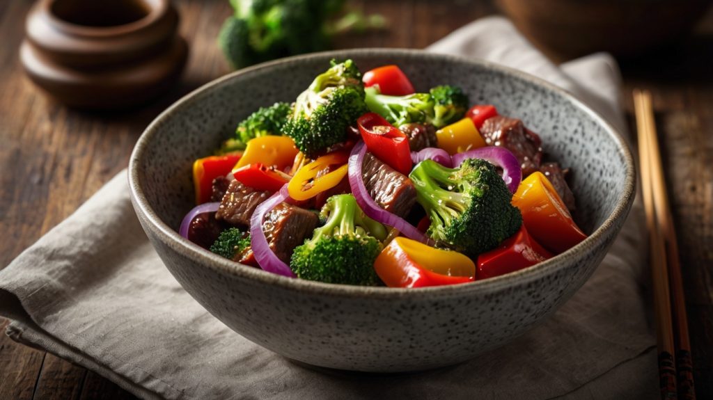 Mit seinem hohen Proteingehalt und frischen Zutaten bietet dieses Gericht die ideale Grundlage für eine gesunde Ernährung. Die Kombination aus saftigen Gemüsewürfeln und würzigem Rindfleisch sorgt für Abwechslung auf deinem Teller und lässt sich ganz einfach variieren – perfekt für alle, die schnelle und nahrhafte Gerichte schätzen!